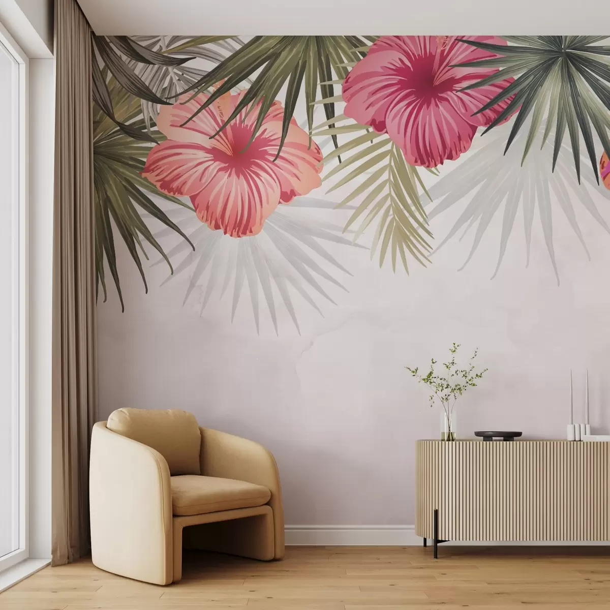 Fototapeten Tropische Blätter und Blumen von oben N° w03106