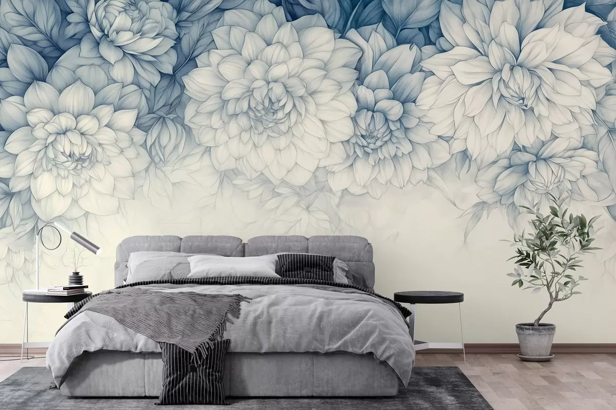 Fototapeten üppige einfarbige Chrysanthemen, die von der Spitze hängen N° w03110