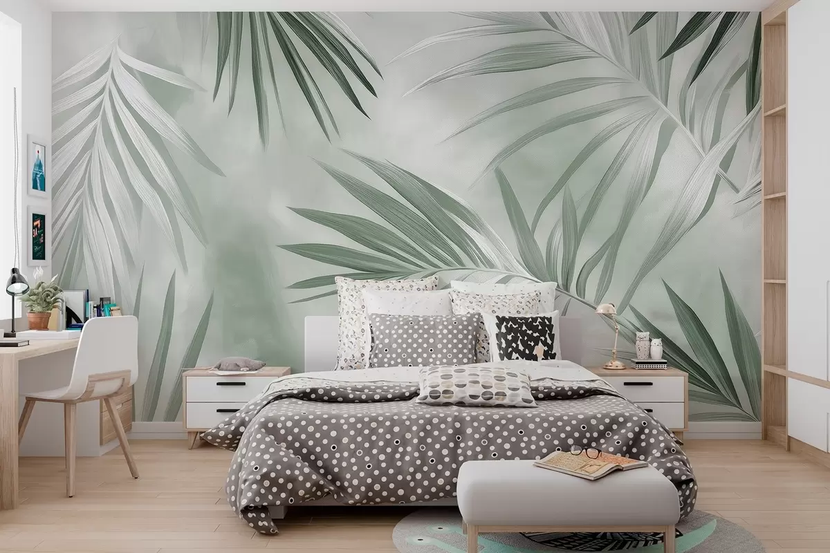 Fototapeten Tropische Blätter Abstraktion, Palme, grüne Farbpalette N° w03153v2