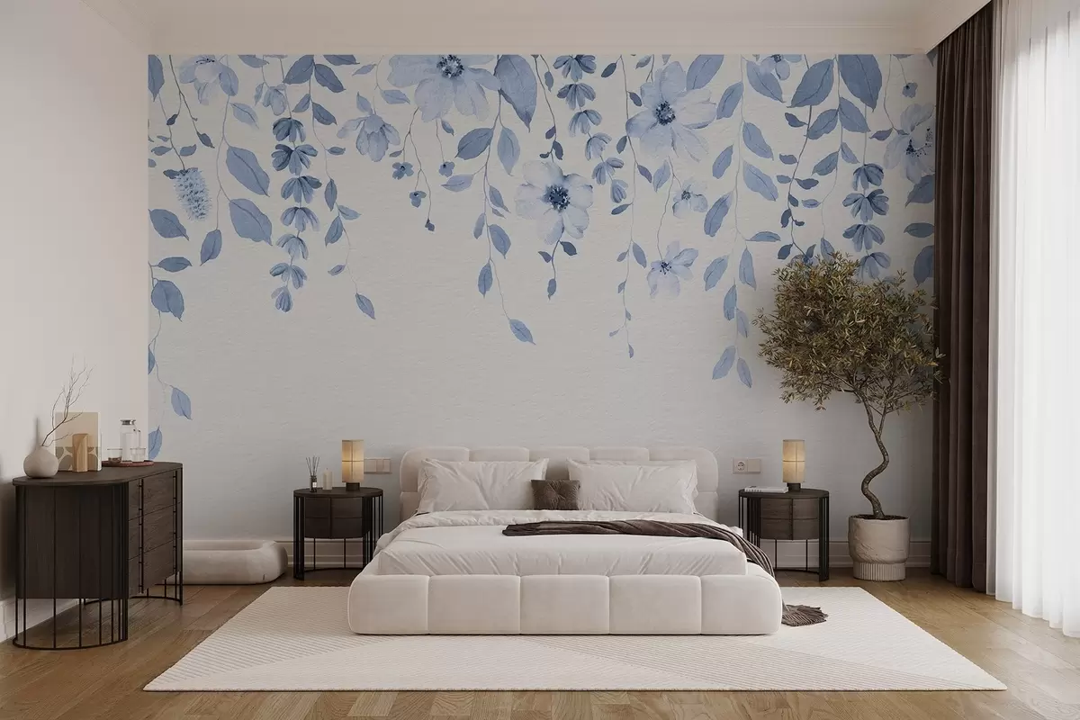 Fototapeten Hängende Aquarellblumen und Blätter N° w03315v3