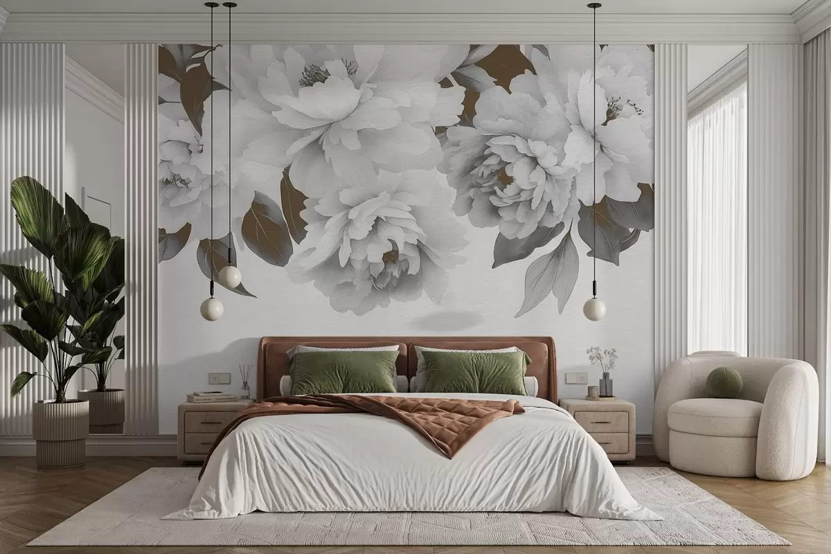 Fototapeten Zarte Aquarell-Pfingstrosen im Vintage-Look N° w03317v1