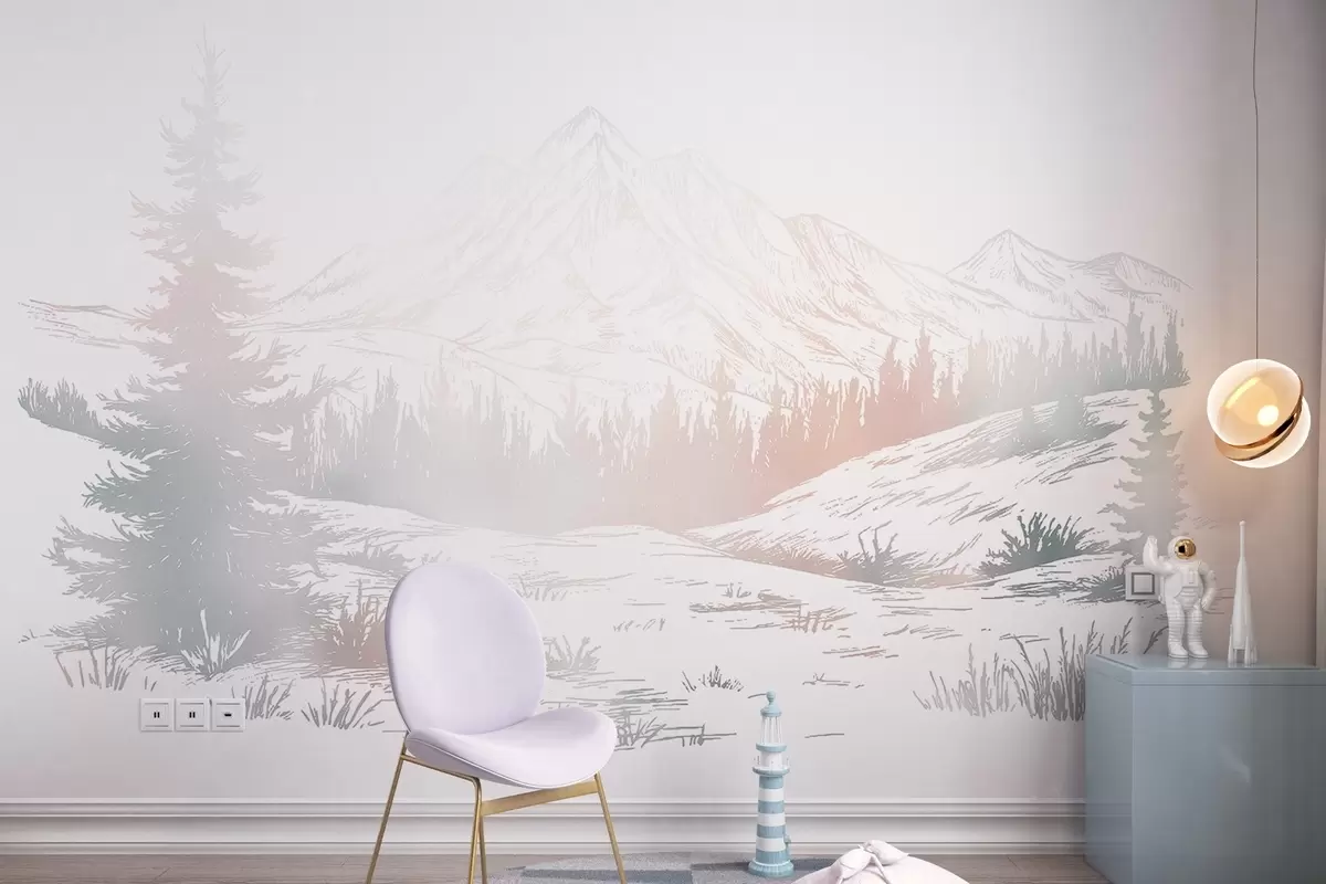 Fototapeten Berge Landschaft mit Kiefern, Wald, Natur, bunt N° w03344v4