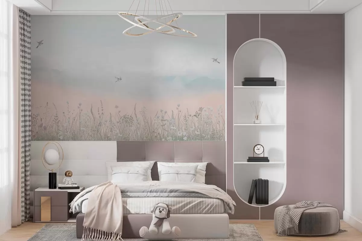 Fototapeten Wilde Blumen und dunstiger Himmel N° w03391
