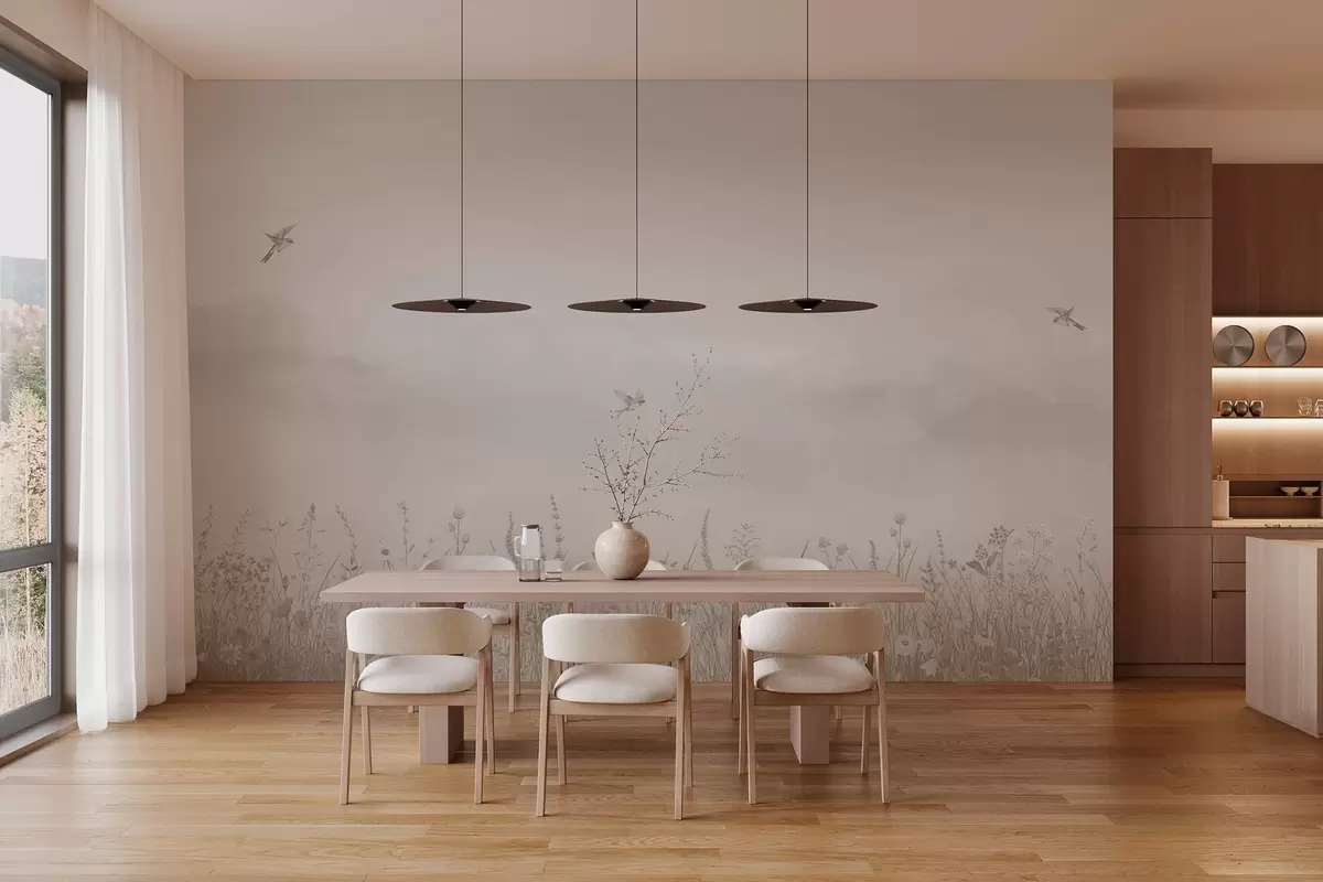 Fototapeten Wildblumen und dunstiger Himmel in Beigetönen N° w03391v2