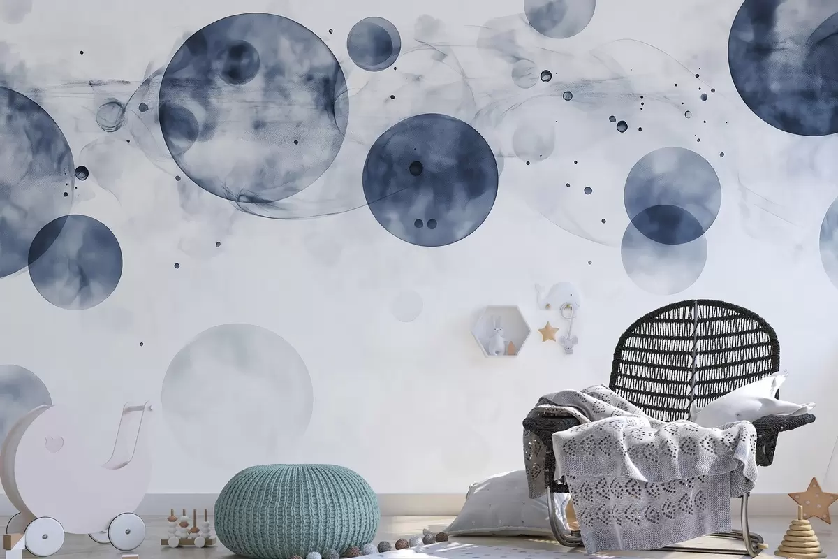 Fototapeten Kreise im Aquarellstil, Abstraktion, ätherisch, fließende Kunst, graue Farben N° w03405