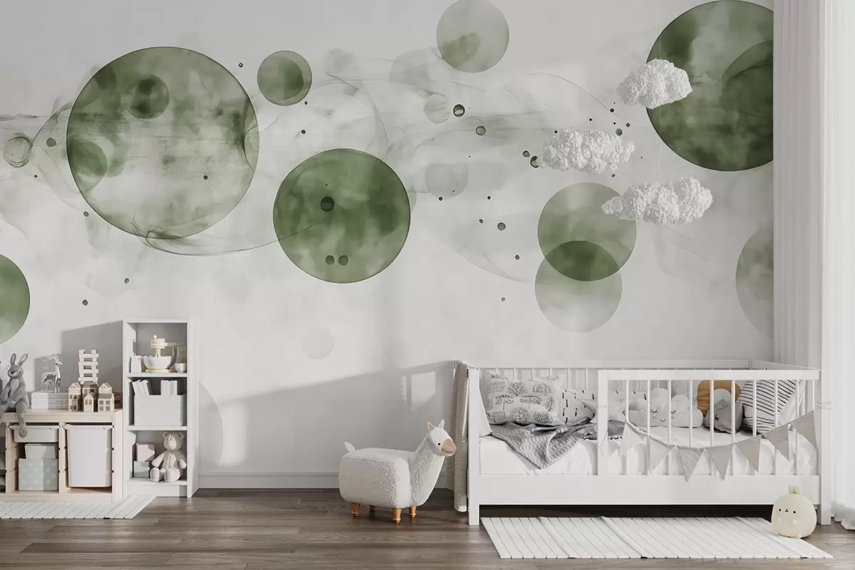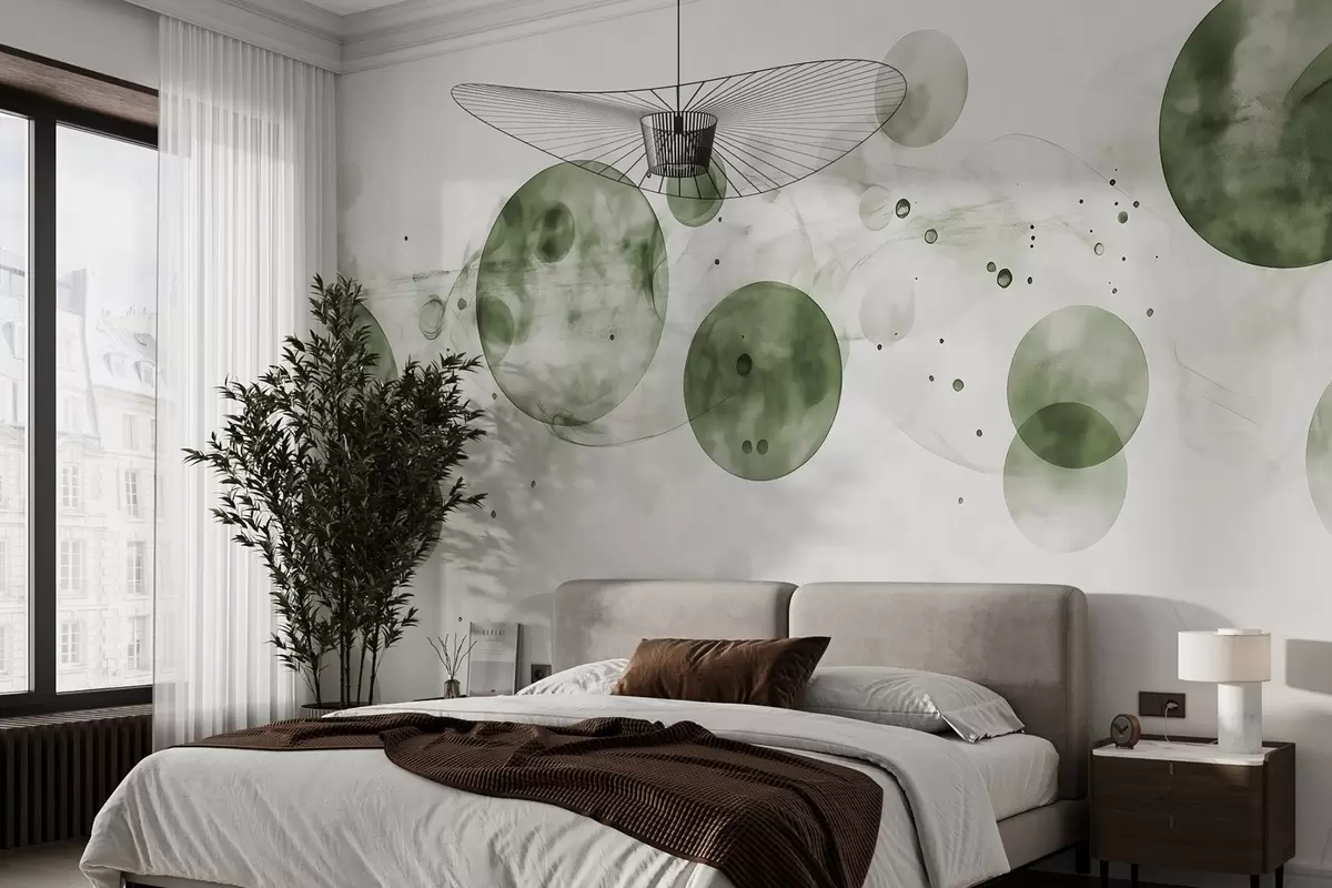 Fototapeten Kreise im Aquarellstil, Abstraktion, ätherisch, fließende Kunst, grüne Farben N° w03405v1