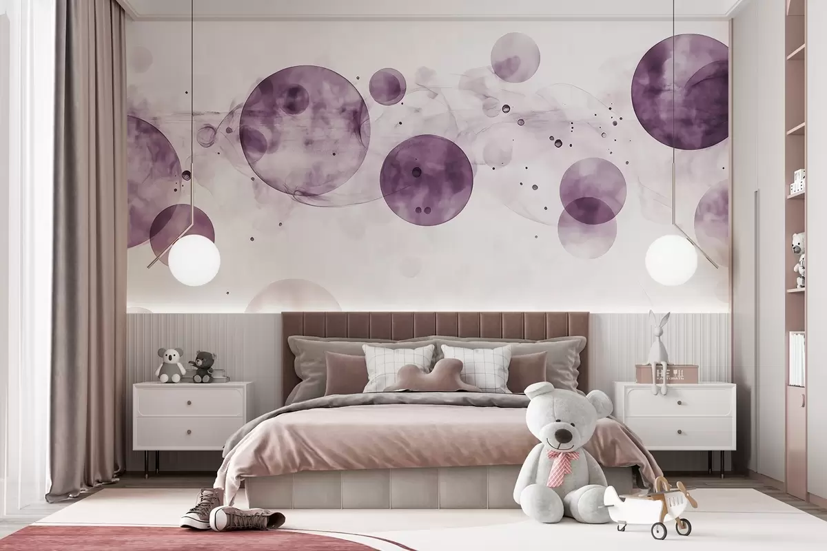 Fototapeten Kreise im Aquarellstil, Abstraktion, ätherisch, fließende Kunst, lila Farben N° w03405v2