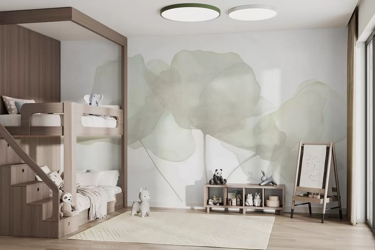 Fototapeten Schöne Blumen, weiche Pastellfarben, Minimalismus, natürlich, rustikal, beige und grün N° w03407