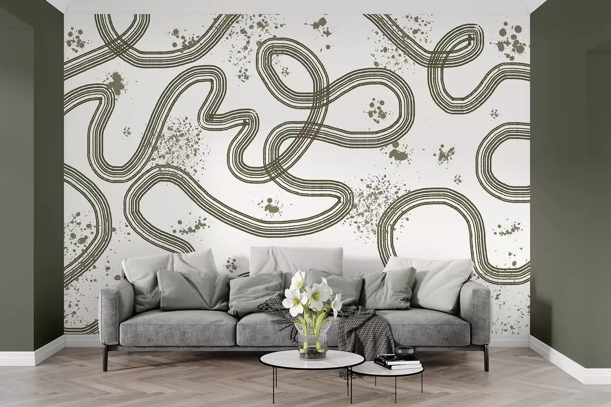 Fototapeten Strichzeichnung, Farbspritzer, Minimalismus, Olivenfarbe N° w03408