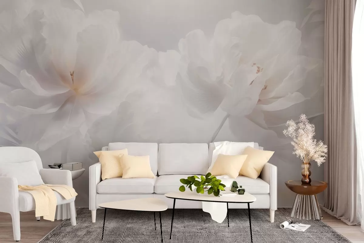 Fototapeten Blühende helle Blumen auf hellem Hintergrund N° w03443