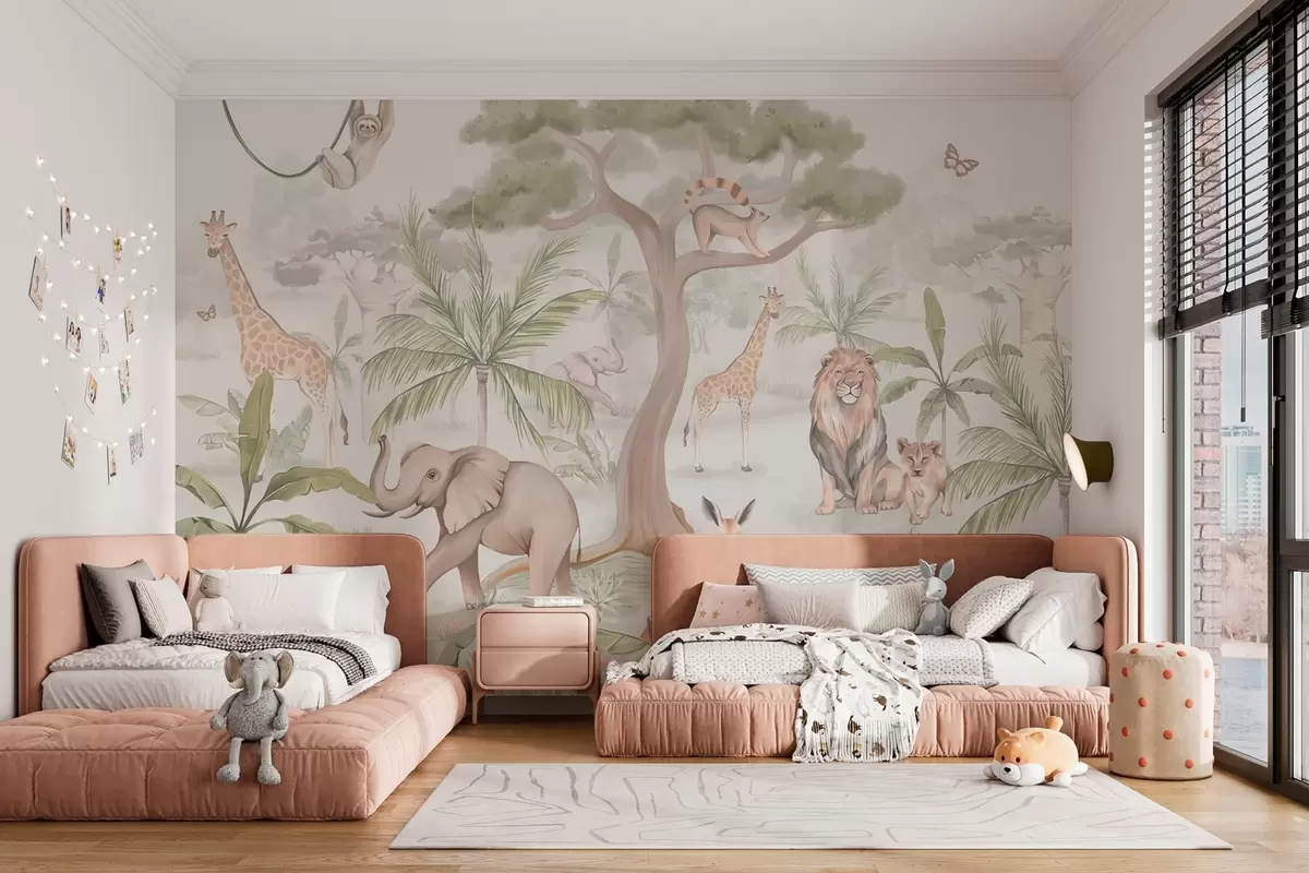 Fototapeten Panorama des Dschungels mit Tieren N° w03444