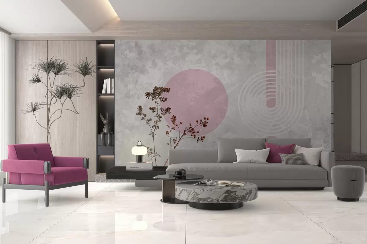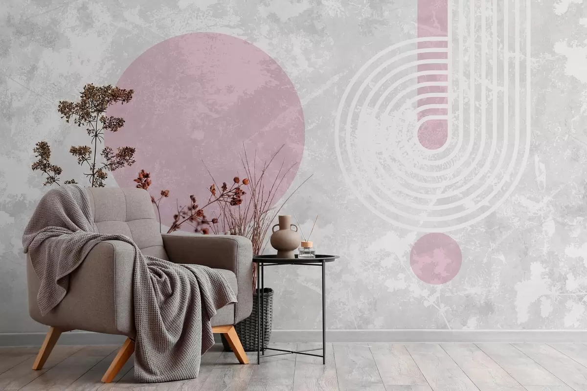 Fototapeten grunge moderne Geometrie mit getrockneten Blumen N° w03459