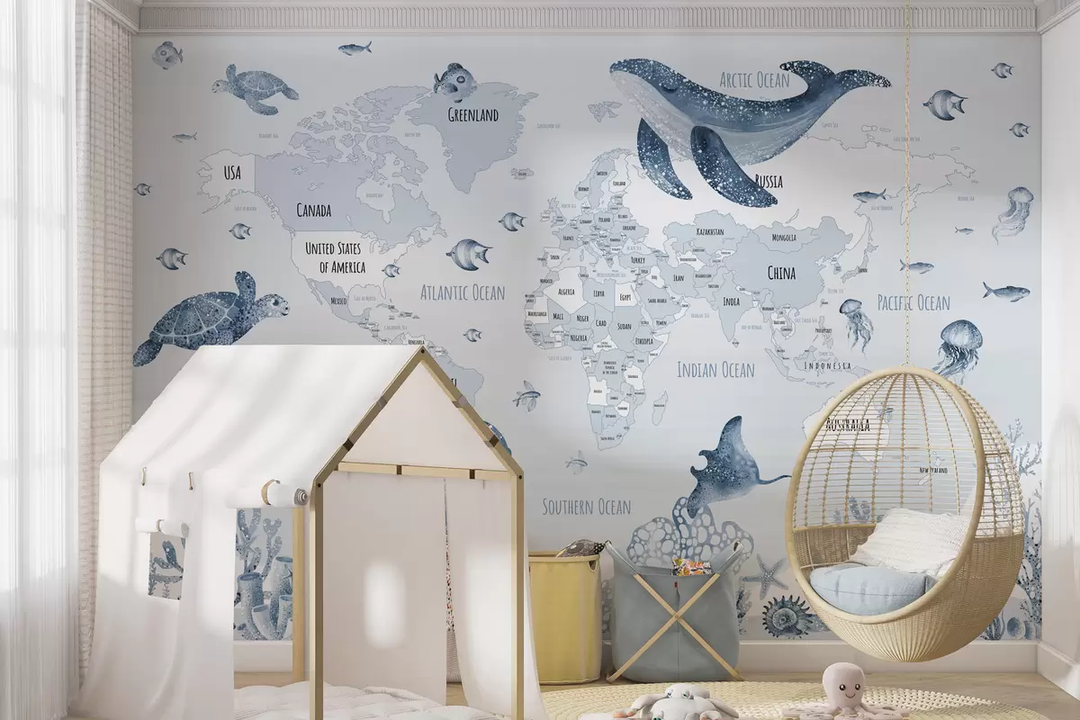 Fototapeten Unterwasserwelt mit Weltkarte N° w03526v3