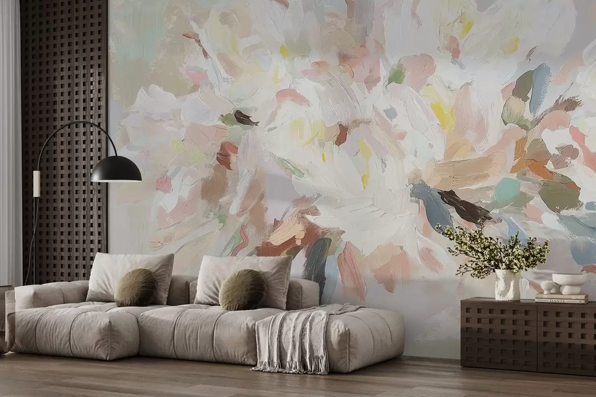 Fototapeten Zarte abstrakte Blumen im Stil der Ölmalerei N° w03579