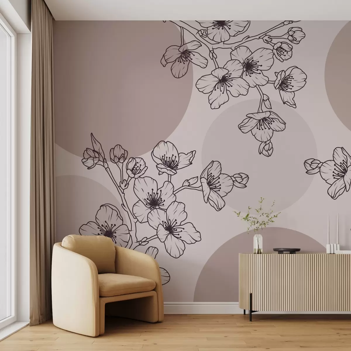 Fototapeten Zweige mit Blumen auf farbigen Kreisen in Brauntönen N° w03712