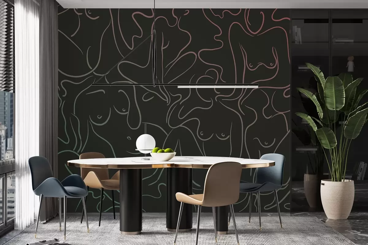 Fototapeten Strichzeichnung anatomische Silhouetten, Abstraktion, dunkler Hintergrund N° w03755v2