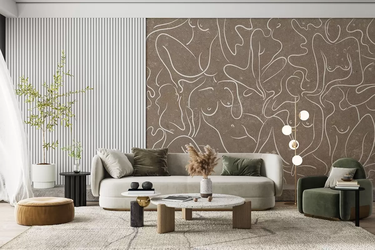 Fototapeten Strichzeichnung anatomische Silhouetten, Abstraktion, beige Hintergrund N° w03756