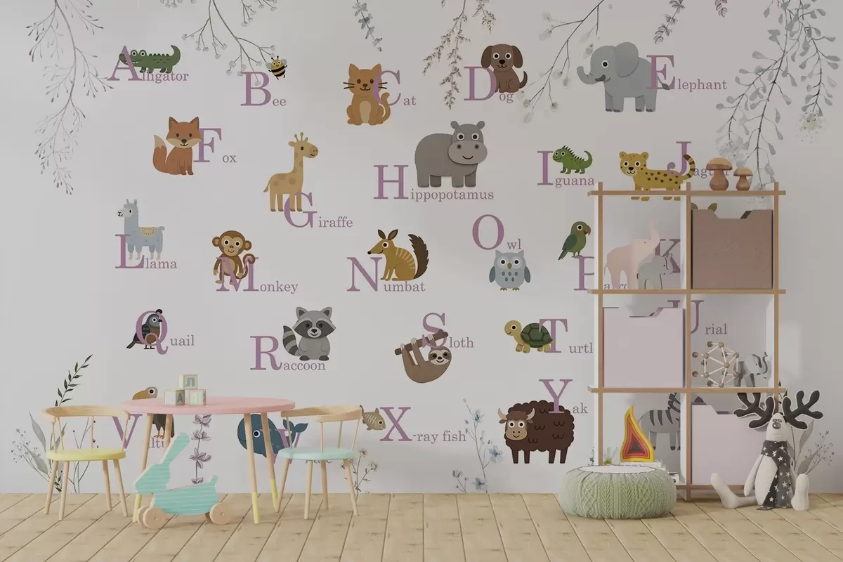 Fototapeten Minimalistisches Alphabet mit rosa Buchstaben N° w03808v1