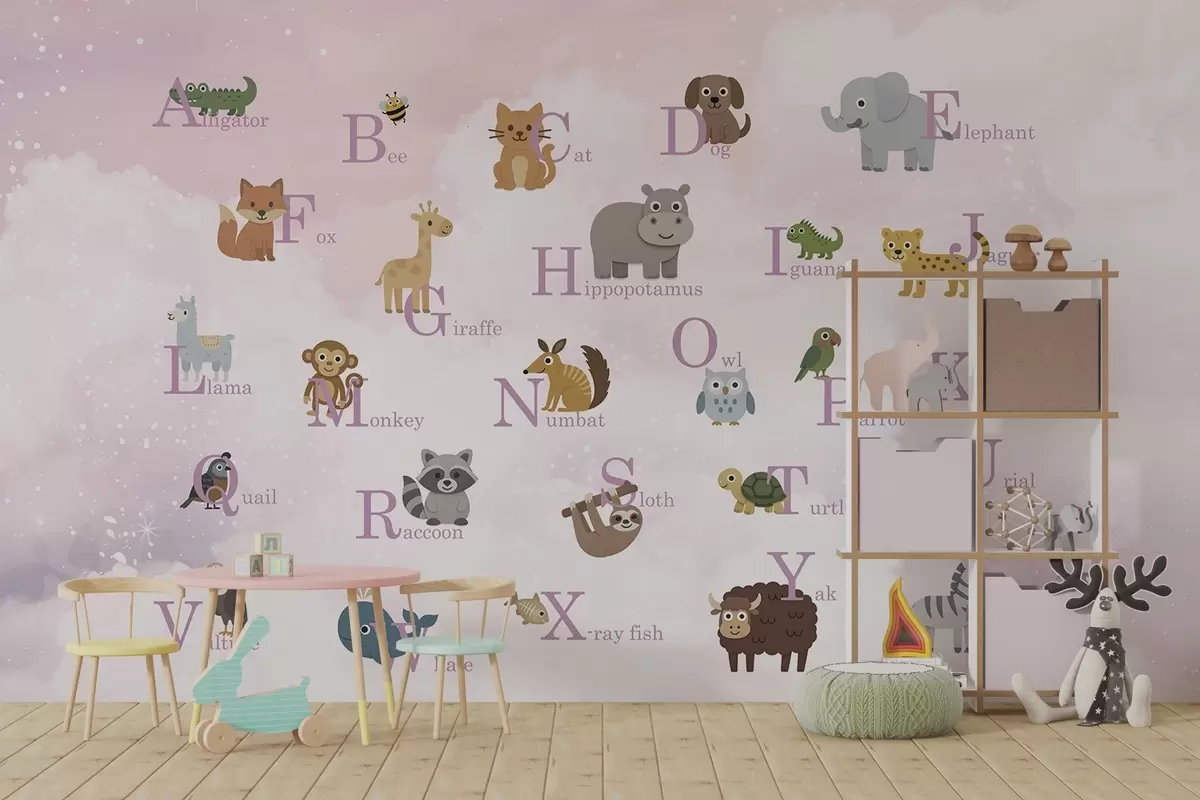 Fototapeten Alphabet mit rosa Buchstaben auf dem Himmel Hintergrund N° w03810