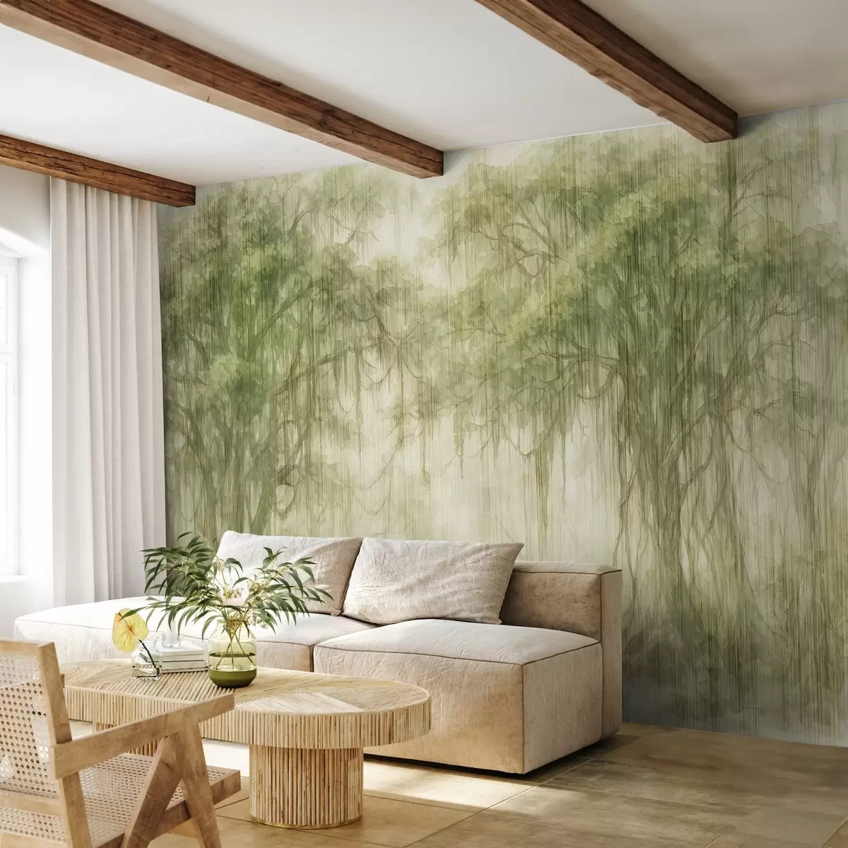 Sie können die Tapete sehr vorsichtig mit einem leicht feuchten Schwamm reinigen. Wir raten jedoch davon ab, die Tapete zu schrubben oder Reinigungsmittel zu verwenden, da dies die Oberfläche und die Farben der Tapete beschädigen kann.