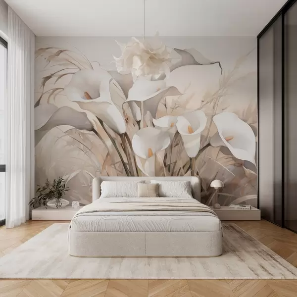 Fototapeten Calla Lilien in trockenem Gras Nachahmung von Aquarell N° w03843v1