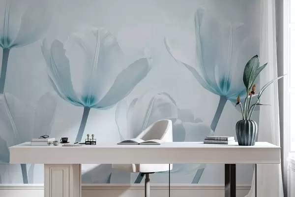 Fototapeten Schöne Tulpen, blumig, blaue Farben, Realismus N° w03877v1