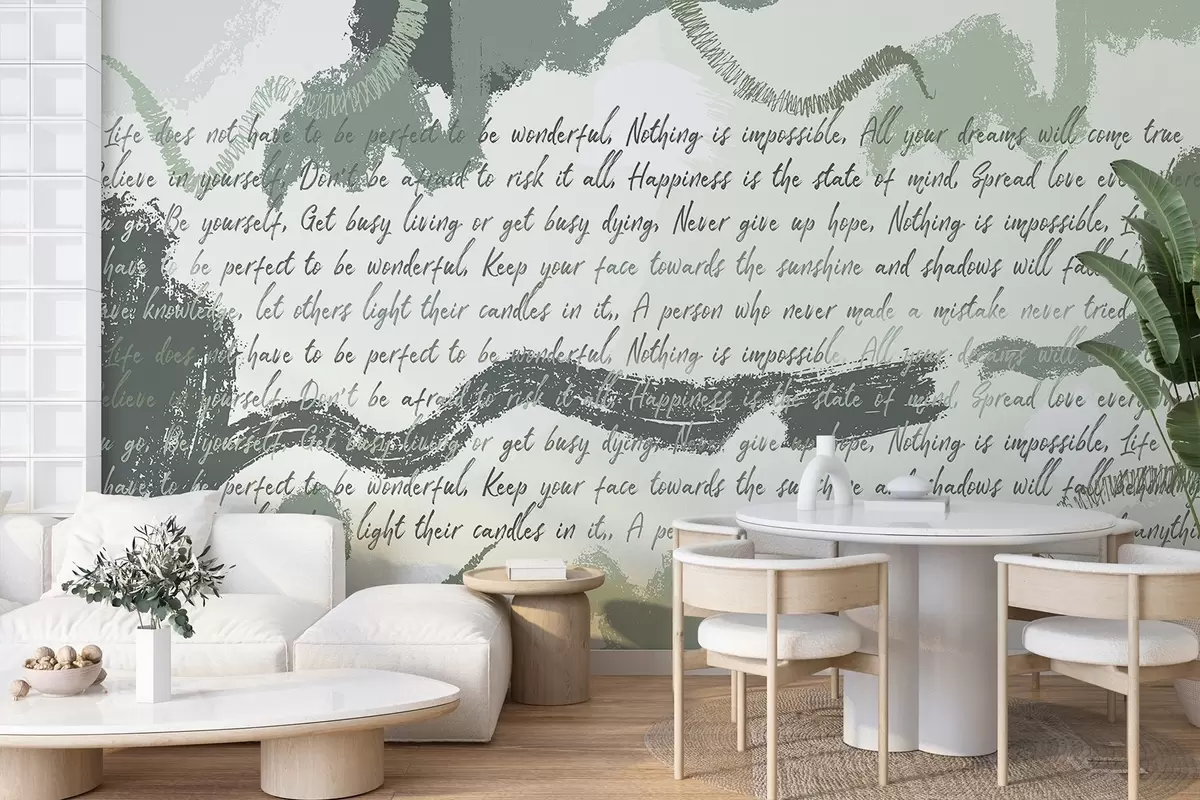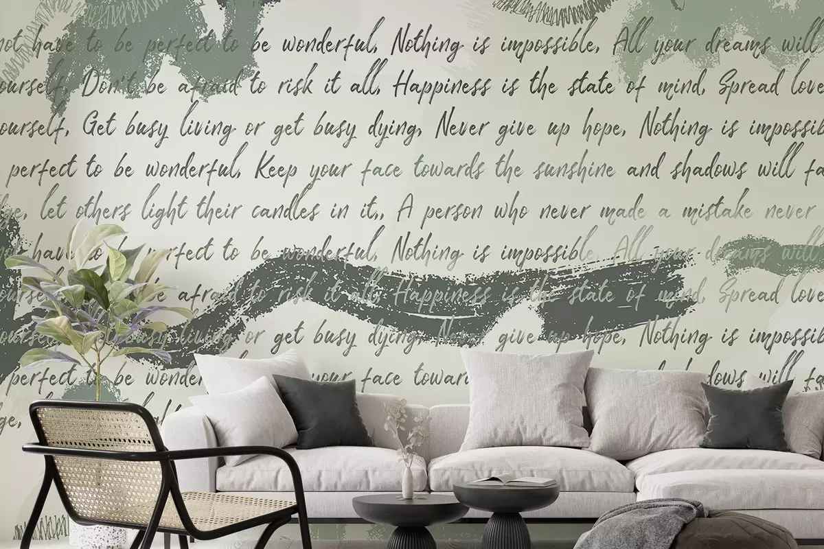 Fototapeten Design mit inspirierenden Zitaten, Abstraktion, grünen Farben N° w03909v1