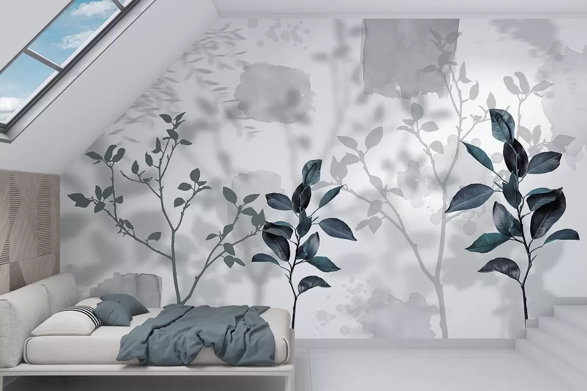 Fototapeten Zitronenbaum Blätter, Baum Zweige Schatten, Natur, Aquarell, blau N° w03910v2