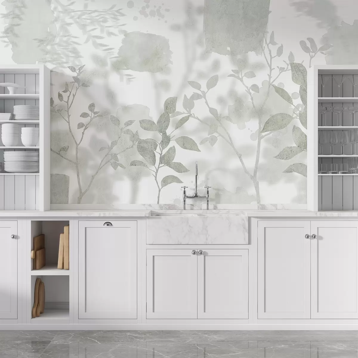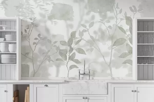 Fototapeten Bäume Silhouetten, Äste, Natur, Aquarell, grüne Farben N° w03911v1