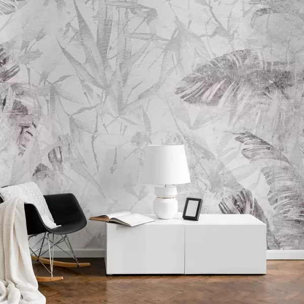 Fototapeten Florale Abstraktion im Grunge-Stil mit Nachahmung von Abrieb, lila Schattierungen N° w03926v1