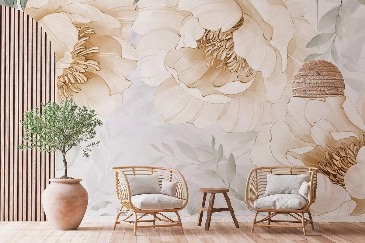 Fototapeten Gelbe Pfingstrosen Nachahmung Aquarell N° w03932v1