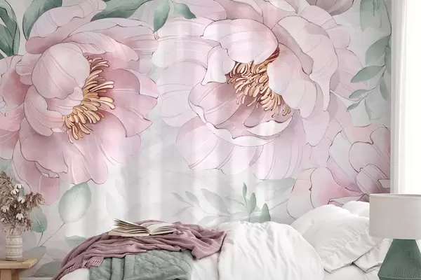 Fototapeten Rosa Pfingstrosen Nachahmung Aquarell N° w03932v2