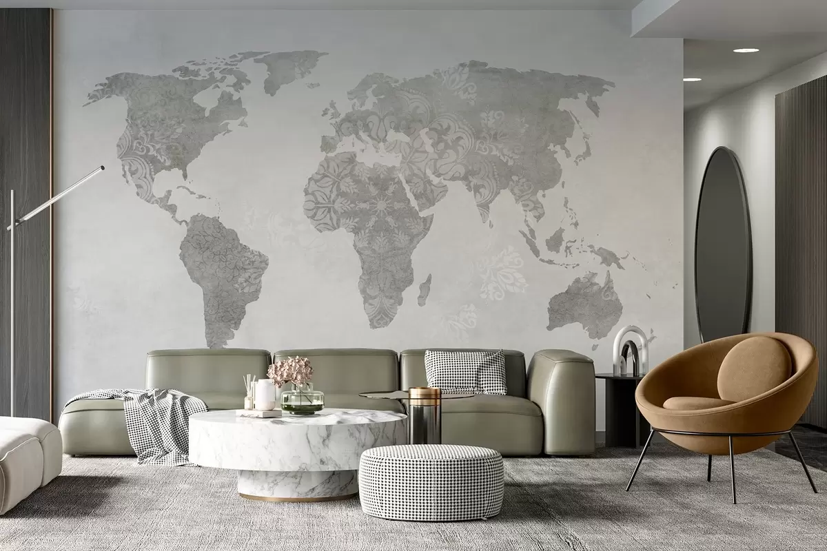 Fototapeten Weltkarte mit Muster, monochrome Farbtöne N° w03954v1