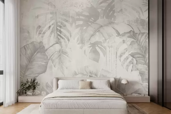 Fototapeten Tropische Blätter im Grunge-Stil, monochrome Farbtöne N° w03956v1