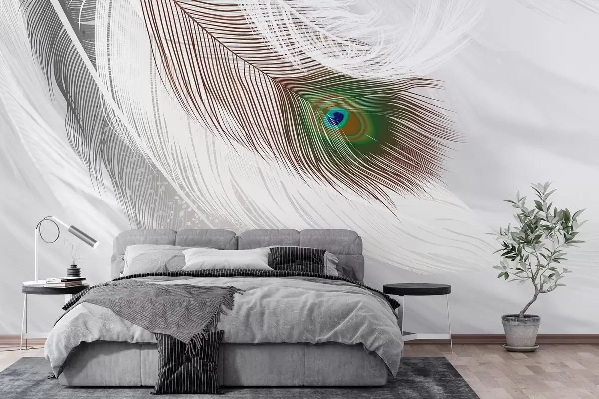 Fototapeten eine große Pfauenfeder unter den Federn N° w03961