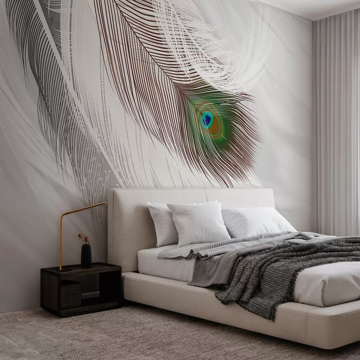 Fototapeten eine große Pfauenfeder unter den Federn N° w03961