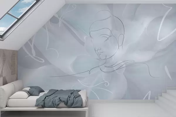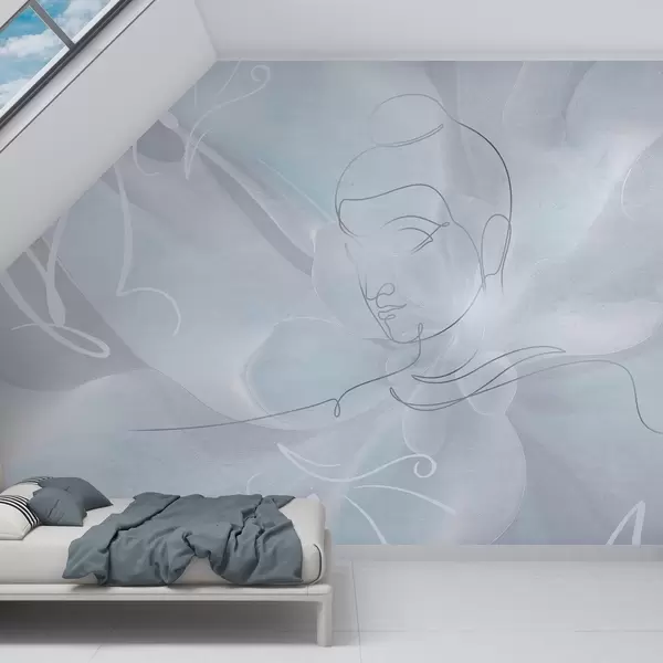 Fototapeten Florale Abstraktion mit Buddha-Linienzeichnung, blaue Farben N° w04004v1