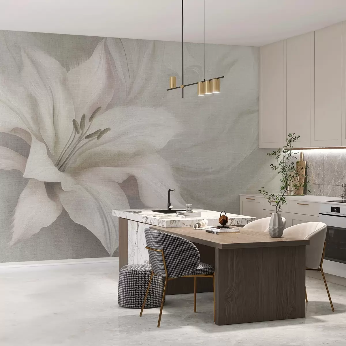 Fototapeten Lilie Blume Flüssigkeit Abstraktion, floral, graue Farben N° w04006v2