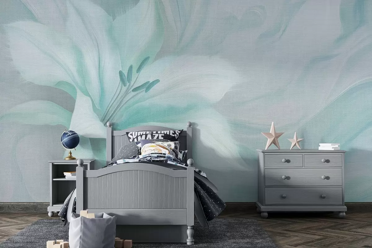 Fototapeten Lilie Blume Flüssigkeit Abstraktion, floral, Aquamarin Farben N° w04006v3