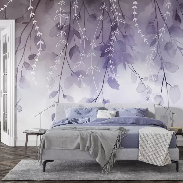 Fototapeten Äste mit Blättern im Aquarellstil, natürliche lila Farben N° w04007v2