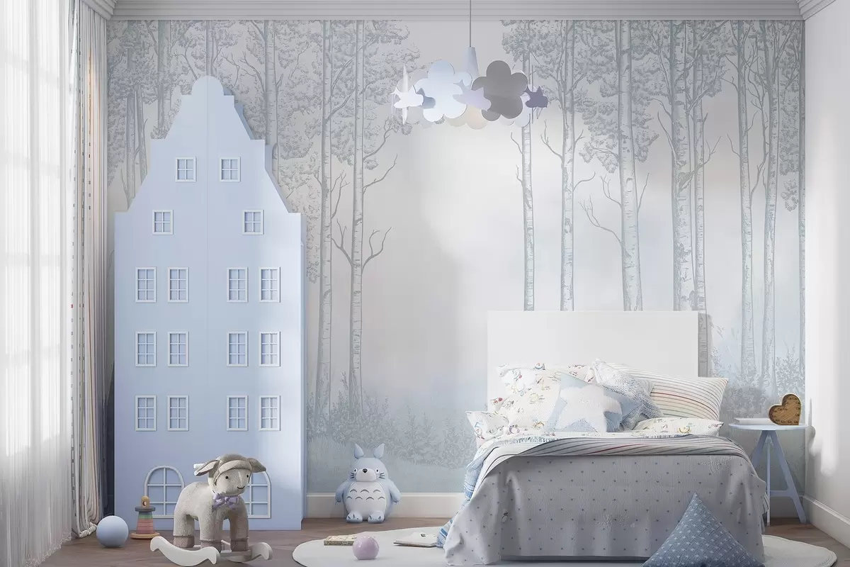 Fototapeten Wald mit Birken, Minimalismus, Natur, blaue Farbpalette N° w04009