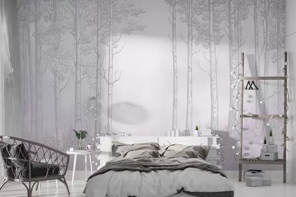 Fototapeten Wald mit Birken, Minimalismus, Natur, rosa Farbpalette N° w04009v2