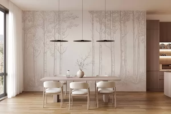Fototapeten Wald mit Birken, Minimalismus, Natur, beige Farbpalette N° w04009v3