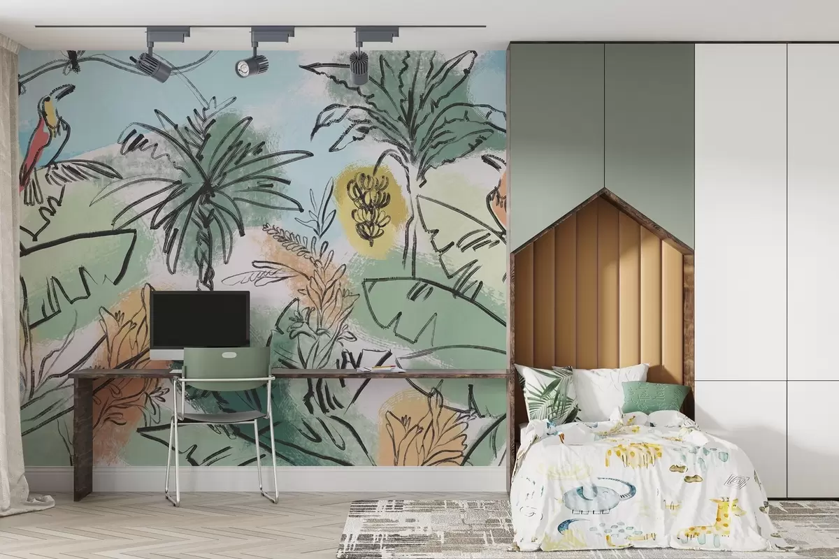 Fototapeten Tropischer Druck mit Papageien, satte Farben, Tropen N° w04019