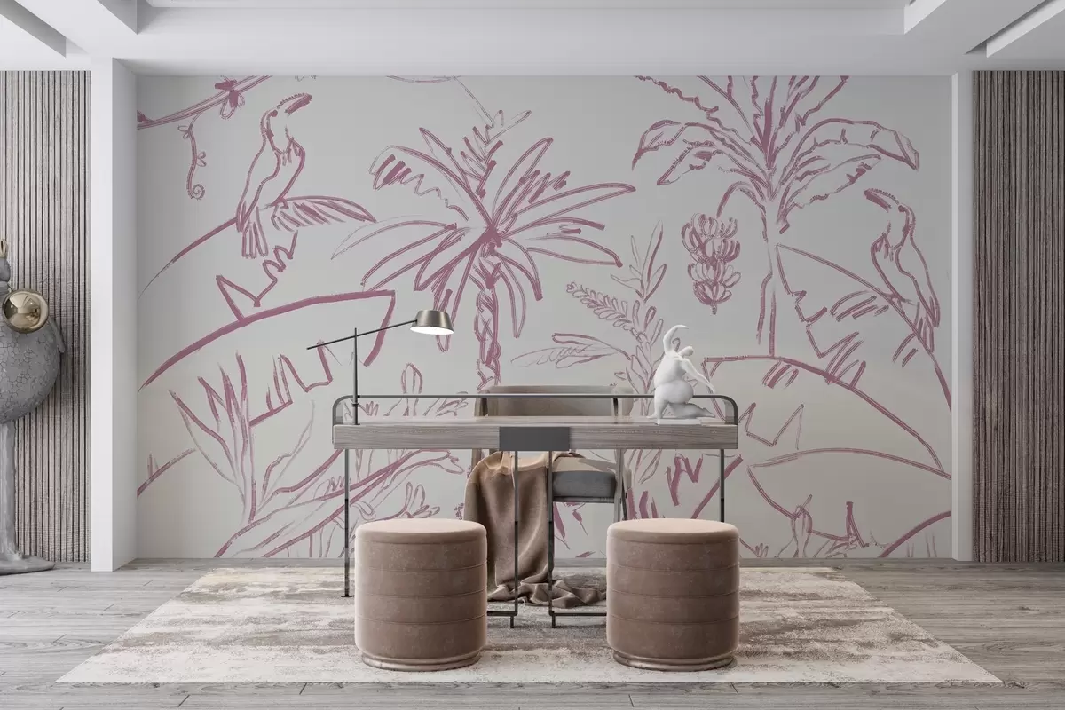 Fototapeten Tropische Linien in Rosa, tropische Pflanzen, Bananen N° w04020v2