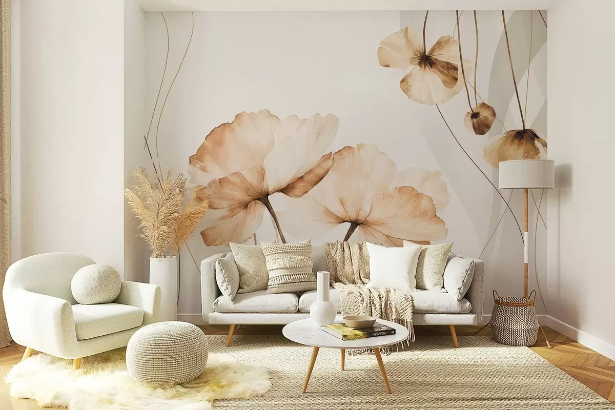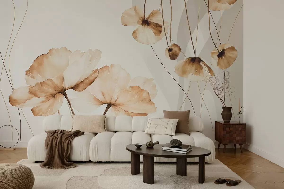 Fototapeten blumen im Aquarellstil in Brauntönen N° w04026