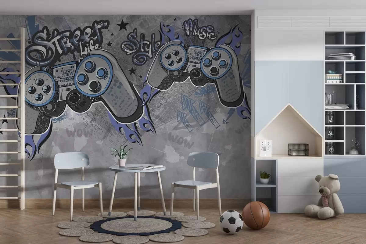 Fototapeten Konsolen im Street-Art-Stil an der Grunge-Wand N° w04054