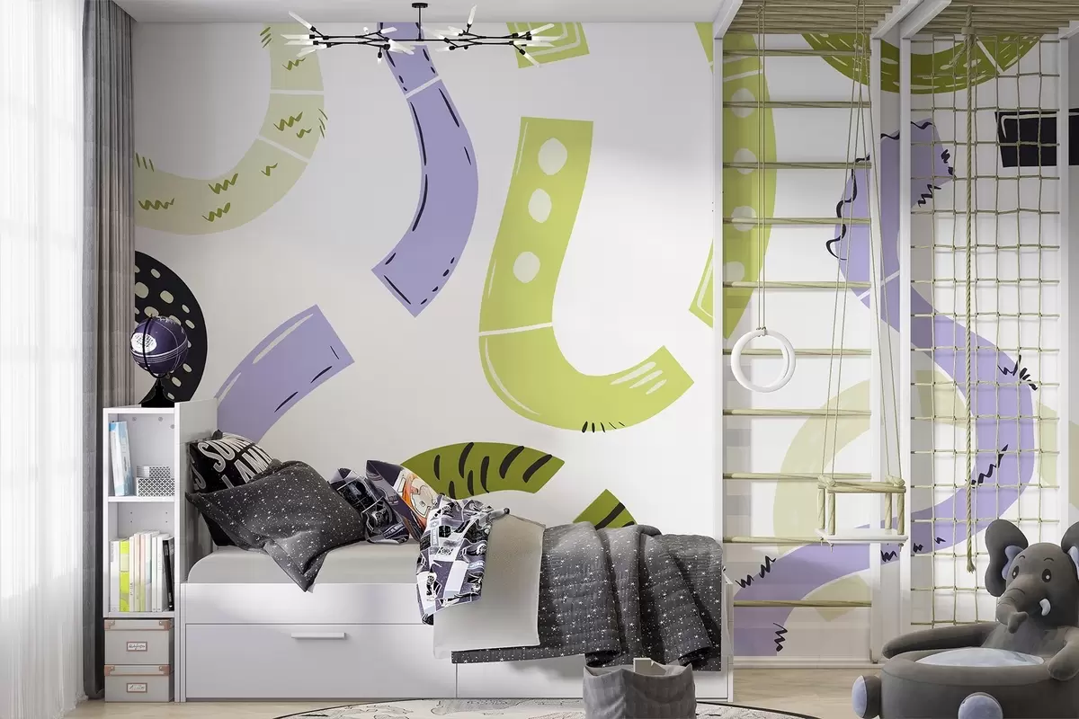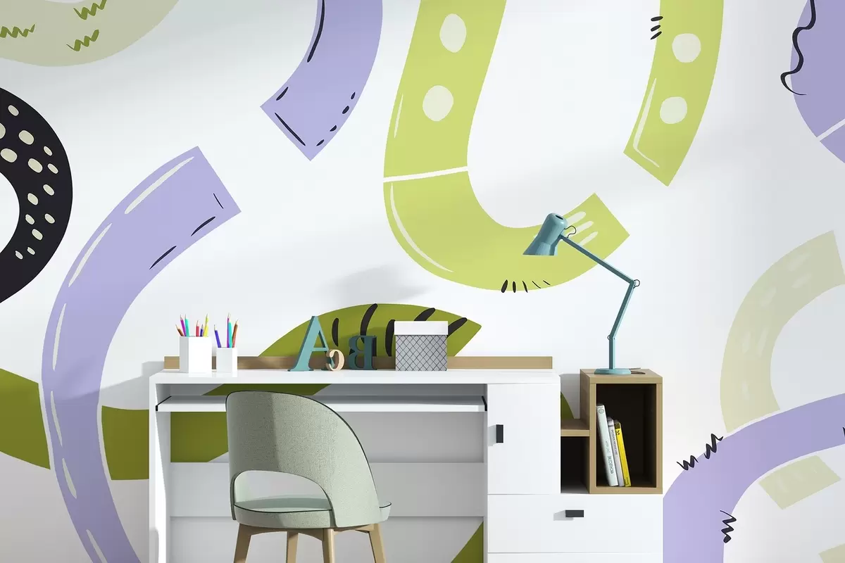 Fototapeten Abstrakte Zeichnungen, jugendlich, Kritzeln, grün, lila N° w04066v1