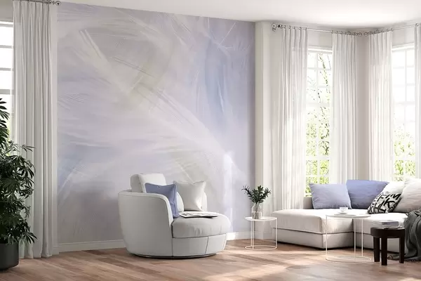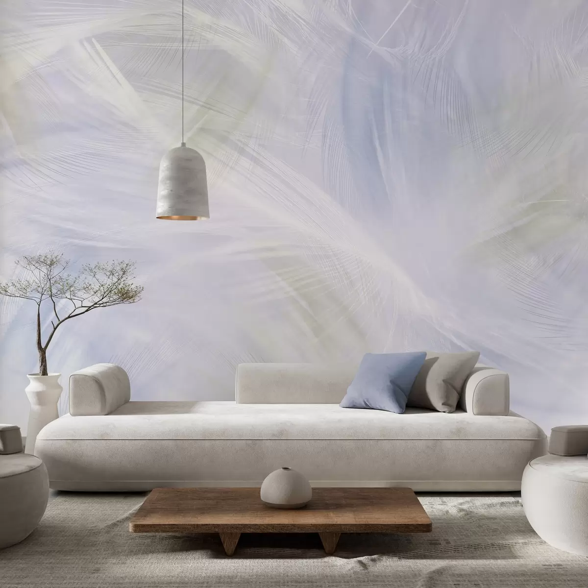 Fototapeten luftige Federn in Beige- und Blautönen N° w04071v1