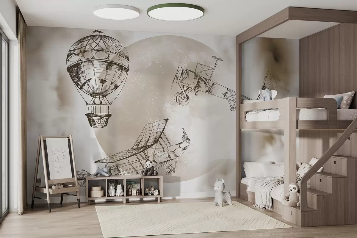 Fototapeten Retro-Flugzeuge vor dem Hintergrund des Mondes und der Wolken N° w04085v1